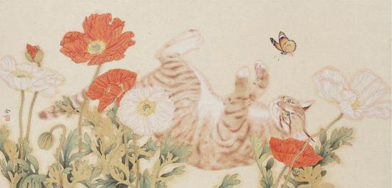 周全 猫蝶图(之二) 33.5×69cm 纸本设色 2020