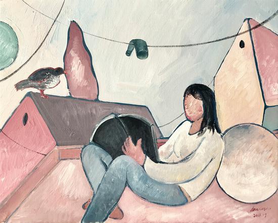 唐云辉 看世界系列 43x31cm 布上丙烯 2020