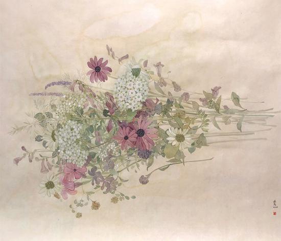 鲍莺 山花 68x55cm 纸本水墨 2020