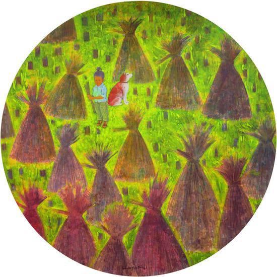 郭柯君 金秋 直径68cm 纸本设色 2017