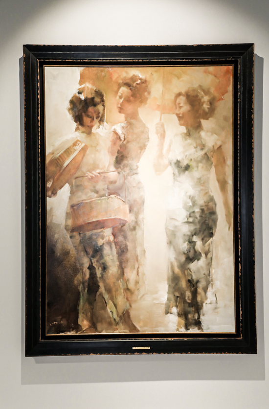 贝家骧,生于1953年,那时的石库门里弄是本地居民主要的居住环境。老上海的生活深深地刻入贝家骧的记忆,并呈现于他后来的艺术创作中。贝家骧以老上海为主题的作品,是他在上海的长期生活中不断接触和感受中,逐渐形成并高度凝缩后的形象。这种对石库门、旗袍名媛、里弄生活的直观再现,迅速拉近了艺术作品与观众之间的距离,同时这种创作中的中西融合,正暗合了上海海纳百川的城市精神,与石库门建筑中西合璧的特色相得益彰,既浓缩了海派文化,也延伸出文化认同感,使观者与展览之间产生了良好的互动,带动起了观者对艺术作品的深入认同,联动着对整体历史建筑本身都产生了极大的热情与探索的好奇心。