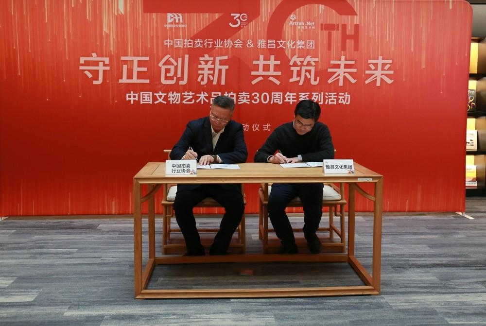 在与会嘉宾及代表的见证下,双方代表签约战略合作协议,同时也意味着“守正创新 共筑未来-中国文物艺术品拍卖30周年系列活动”正式启动。