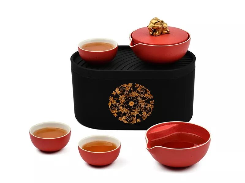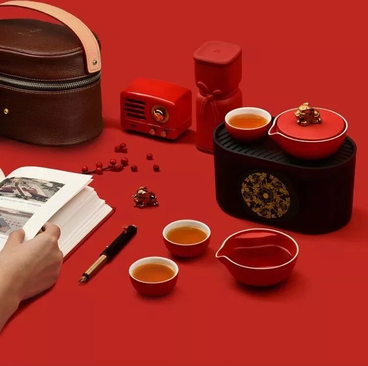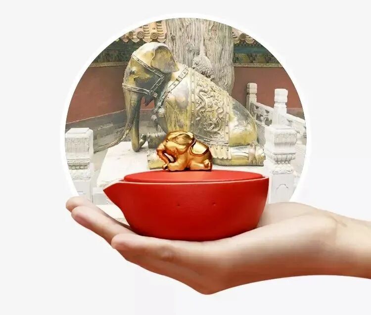 01 掌中能载象 富贵又吉祥 象是中国传统文化中瑞兽之一,有着祥瑞、富贵、太平的美好象征。 设计元素取自故宫院藏文物《御花园承光门内鎏金铜象》,铜象前腿负跪,取自“负跪吉象”的谐音,寓意“富贵吉祥”。 鎏金铜象在匠人的手工雕刻下,灵动生趣。特别复刻“斑驳仿古鎏金”效果,在茶器上还原了“负跪吉象”的风貌。 典雅的朱红釉色,手工釉上彩德国【贺利氏】高纯度黄金水点缀金象,让茶器也多了几分高贵。 02 御前恩宠 能纳福的牡丹纹茶盘 提取《剔红牡丹纹圆盘》牡丹花元素,以金线勾勒盛开牡丹轮廓,美感从细节处流溢。 搭配吉象雕塑茶器,有着“花开富贵、吉祥如意”的美好寓意。 03 奉旨质造 处处再现宫匠细节 身材轻小,却功能强大,成功解决完整泡茶体验与轻小体积的矛盾,去繁取简,让喝茶少一些“规矩”,多一些宫廷意趣。 「中空防烫结构,不烫小主们的手」 茶壶、茶海采用中空双层隔热设计,隔热效果好,让泡茶不再烫手。 「左右手通用,掌控喝茶大局」 正圆壶身设计,符合人体工学握感,更贴近掌心,左右手都适用。 「两段式壶嘴设计,顺水更顺心」 12个出水孔及两段式壶嘴设计,比一般茶具出水更流畅、快速。 「广口式设计,一“清”二楚不烦心」 广口式设计,比一般茶具更易倾倒茶叶,清洗更快捷,省心。 「标配茶海,只有回甘无苦涩」 特别配置了茶海(公道杯),避免茶叶与茶汤长时间浸泡而变得苦涩难咽,还原茶汤甘甜口感。 「大容量耐高温茶盘,如纳百川」 既是茶盘也是收纳盒,能容纳850毫升茶渣茶水,还能完整收纳整套茶具。 采用高品质环保ABS材质,比传统实木、陶瓷茶盘更轻便,不易开裂。 04 33道严苛工序 重燃宫匠初心 33道手作工序由简入繁,由匠人凭借多年经验手工完成,呈现机器流水线难以表达的质感。 采用更高难度的独立托盘扣烧工艺,每生产一套茶具,需烧毁6个托盘,难度大成品率低。 传统文化与现代工艺的结合,一问世就获得多项国际设计大奖—— 2016红点设计奖 中国好设计金奖 日常生活中,送礼不难,难的是送到人心坎里。《富贵吉象》茶具套装,送礼自用、宴饮会客,均能传递吉祥喜庆之意~