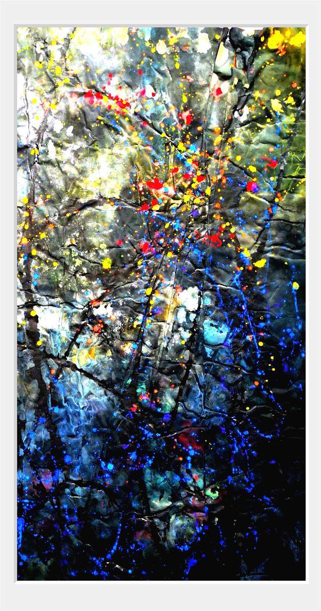 赵一丁:“墨分五色笔生花,意象万千字如画”,毛笔还是中国画的毛笔,宣纸还是中国画的宣纸,只是表现形态和方法有了变化。新意象是借助物象肌理表达情感,以比喻、假借、暗示和比兴的手法抒情达意,是将意象概念内涵扩大,强调新意念、新表现和新呈现,使画面营造出混沌模糊、含蓄幽深的多维空间。好的作品是艺术家成长背景文化修养阅历及娴熟技法的混合而成。新意象作品的表现应是自发内心的“心灵流淌”,她会带动你全身的细胞都在跳舞,是让你闭上眼睛都向上升腾的,是精神的三维向四维空间的无限转化,而不是神经质的糊涂乱抹。新意象作品也如同酵母,后续的发酵就要看物我空的自身潜能了。以中国之“道”论象:出世者看重无形之象,入世者看重物形之象;证悟者超脱虚空之象;自觉者践悟万物之象。